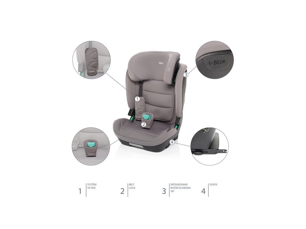 Sedačka sa montuje v smere jazdy a je vybavená systémom ISOFIX, ktorý zabezpečuje stabilné a pevné uchytenie k vozidlu. Dieťa je pripútané trojbodovým bezpečnostným pásom automobilu, pričom nastaviteľná opierka hlavy zabezpečuje správne vedenie pásu a optimálnu ochranu.