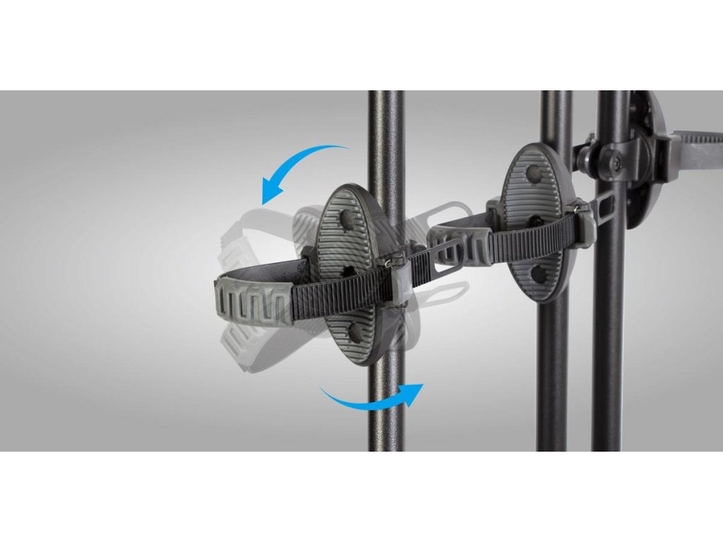 Upínacie popruhy a držiaky kolies uchytia kolesá všetkých rozmerov. Tieto upínacie popruhy umožňujú rýchle a bezpečné upevnenie kolies. Popruhy sú dostatočne dlhé, aby udržali aj najväčšie ráfiky . Kolíska pre uchytenie kolesa je masívnejšia pre lepšiu stabilitu bicykla pri preprave.