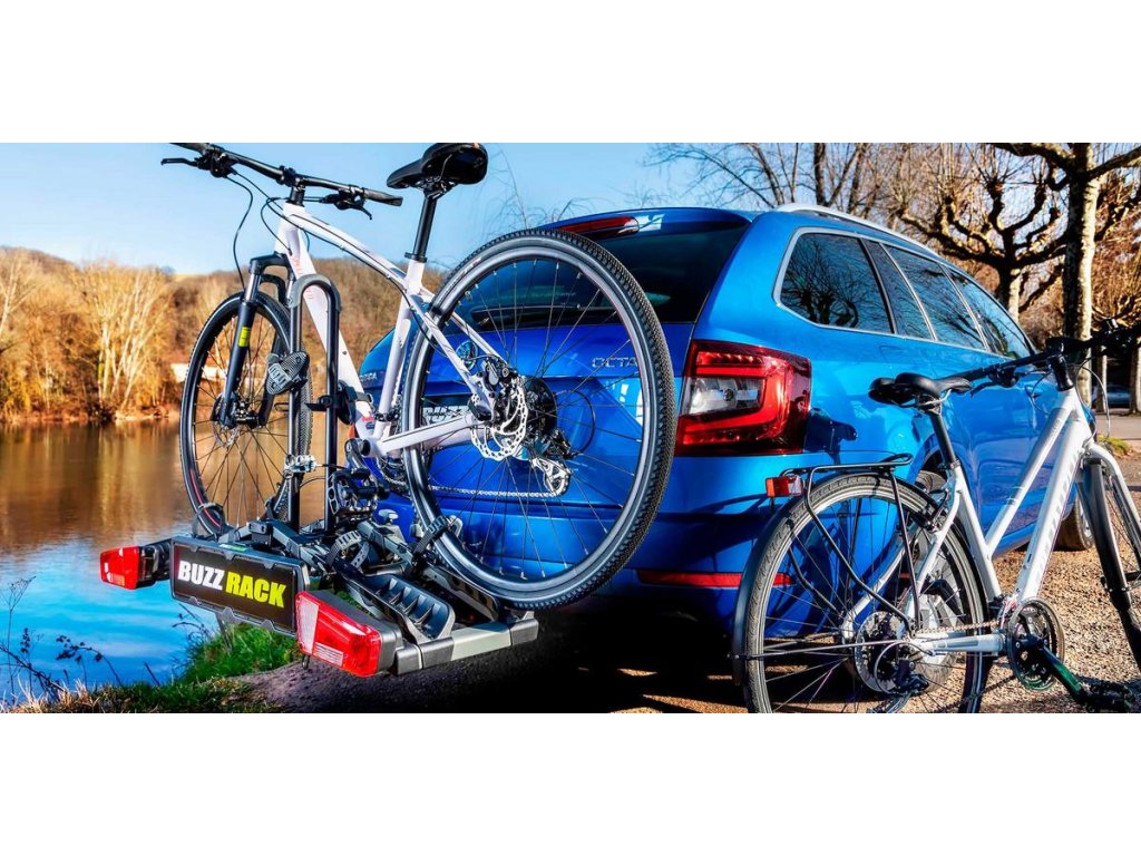 BUZZ EAZZY 2 je určený na prepravu 2 bicyklov . Spoľahlivý nosič na ťažné zariadenie so štýlovým dizajnom za prijateľnú cenu. Je vybavený plnou svetelnou rampou s 13PIN zástrčkou. Namontujete ho na akékoľvek ťažné zariadenie a poskytuje nosnosť až 40kg pričom maximálna hmotnosť jedného bicykla je 20kg. Ak nosič nepoužívate je možné ho poskladať do kompaktných rozmerov.