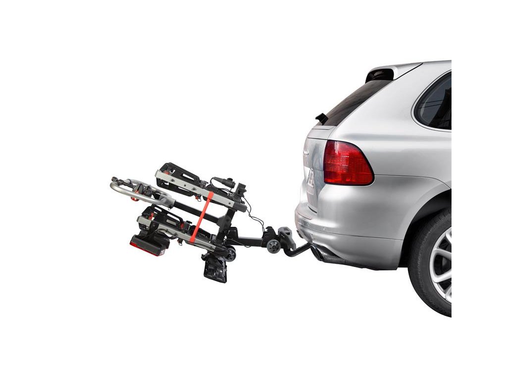 Jeho pevná konštrukcia zaisťuje, že vaše bicykle zostanú na svojom mieste aj pri jazde po náročnom teréne. Navyše s integrovanou svetelnou tabuľou a zámkom nosiča kolies na ťažnú guľu budete mať vždy istotu, že váš náklad je nielen pevne usadený, ale aj riadne označený a zabezpečený proti krádeži.