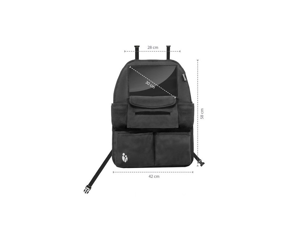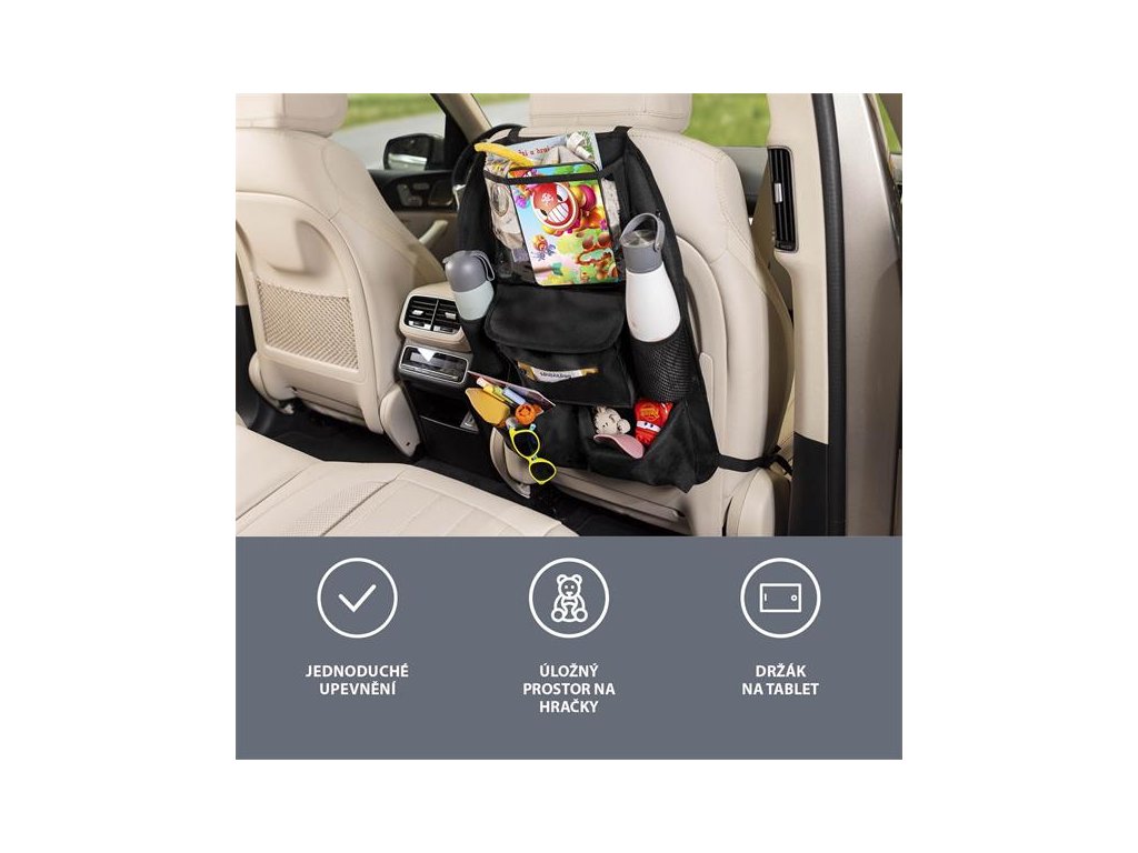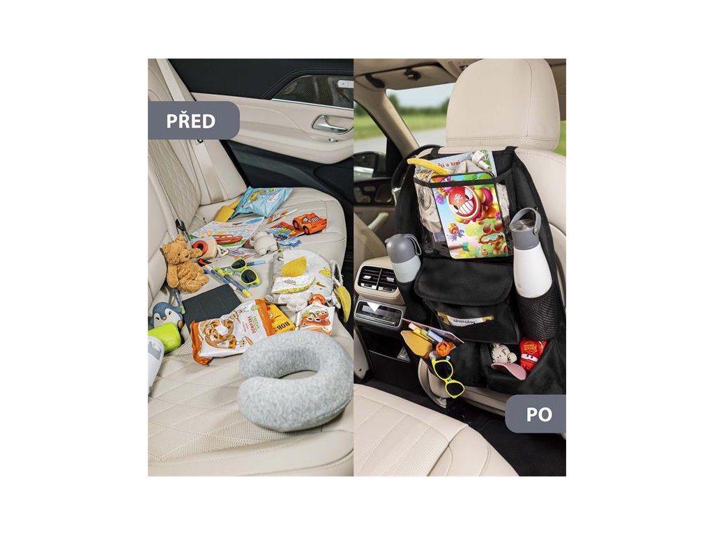 Organizér zároveň chráni operadlo pred špinou, odtlačkami topánok a poškodením. Vhodný najmä pre rodiny s deťmi.