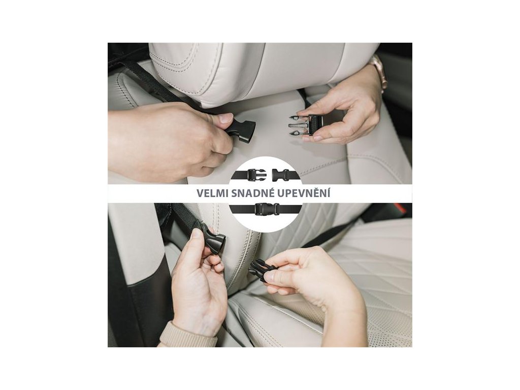 Inštalácia je rýchla a bez použitia náradia. Organizér sa upevňuje pomocou nastaviteľných popruhov okolo opierky hlavy a spodnej časti sedadla, takže pevne drží na mieste.