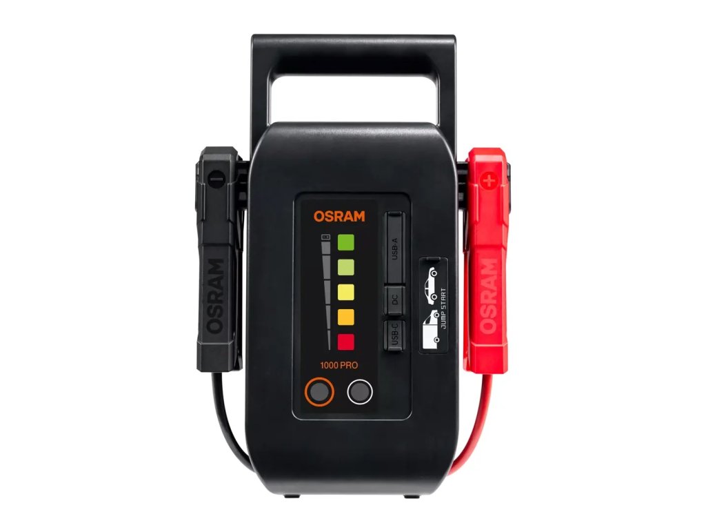 OSRAM BATTERYstart PRO 1000 je bezpečný a kompaktný lítium-iónový kobaltový (LiCoO2) štartér pre profesionálne dielne. Je navrhnutý na viacnásobné použitie a naštartuje všetky vozidlá s benzínovým motorom a vozidlá s naftovým motorom do 10 l. Je oveľa menši v porovnaní s tradičnými olovenými štartérmi a tiež o 75 % ľachši ako tradičné olovené štartéry. Avšak stále bezpečne dodáva vysoký výkon. Zahŕňa inteligentné bezpečnostné svorky na riadenie napájania medzi štartérom a vozidlom, pričom zachováva bezpečnosť používateľa pomocou prepólovania, skratu a ochrany proti prepätiu. Odolná a robustná polykarbonátová konštrukcia robí BATTERstart PRO 1000 ideálnym do dielenského prostredia. Jednotku je možné rýchlo dobiť pomocou nabíjačky PD60W (nie je súčasťou dodávky).