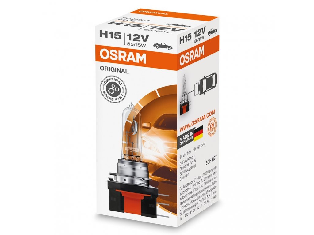 Autožiarovka H15 / PGJ23t-1 / 12V - 15/55W OSRAM ORIGINAL LINE 64176: náhradná autožiarovka určená do svetiel s päticami H15 firma Osram je popredný výrobca automobilovej svetelnej techniky autožiarovky Osram ponúkajú skvelý pomer ceny a výkonu. UV Filter halogén, napájacie napätie: 12V DC.Dodatočné parametre