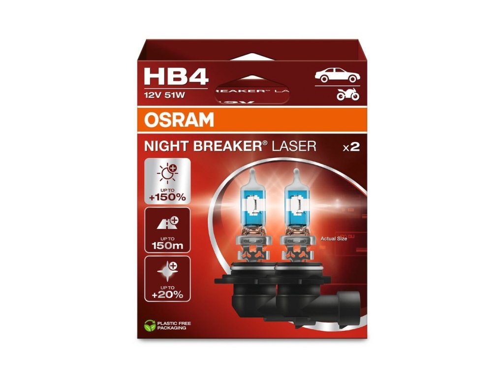 OSRAM HB4 NIGHT BREAKER LASER GEN2 +150% 12V 51W P22d, BOX -Ecopack (9006NL-2HB)