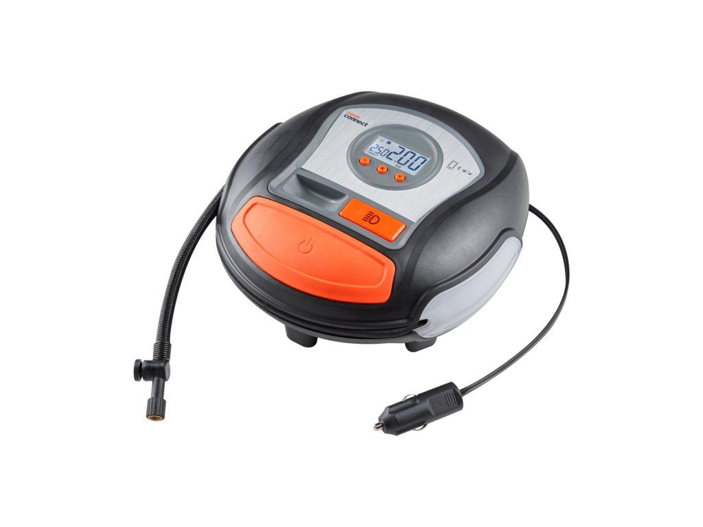 Je vybavený digitálnym displejom, ktorý zobrazuje aktuálny tlak v pneumatikách, a funkciou automatického vypnutia, ktorá zastaví hustenie po dosiahnutí nastavenej hodnoty – bez nutnosti neustáleho sledovania.