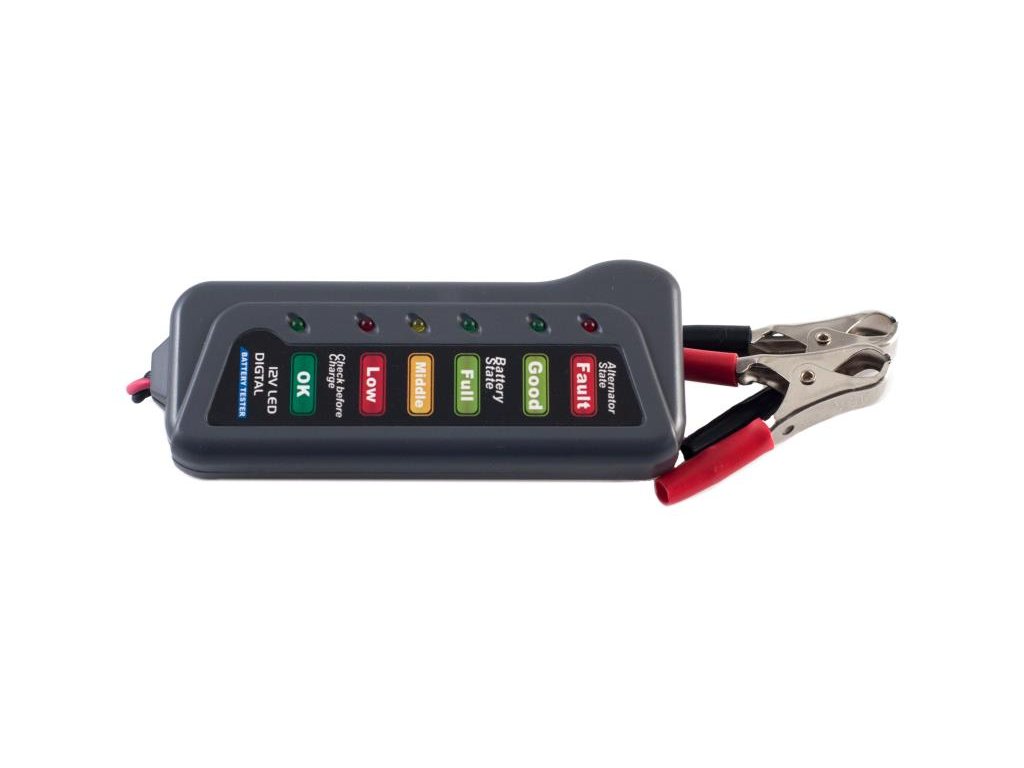 Tester je vhodný pre všetky typy olovených akumulátorov. Tester je vybavený svorkami na priame pripojenie k batérii, má 3 základné funkcie merania: test autobatérie, test alternátora a test autobatérie počas štartovania.