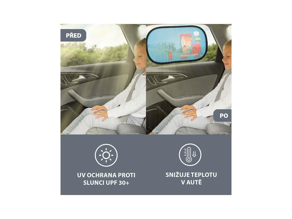 Clony sú vyrobené z kvalitného tieniaceho materiálu, ktorý prepúšťa dostatok svetla, no zároveň tlmí ostré slnečné žiarenie. Vďaka veselému motívu so zvieratkami si ich deti okamžite obľúbia a cestovanie sa stane zábavnejším.