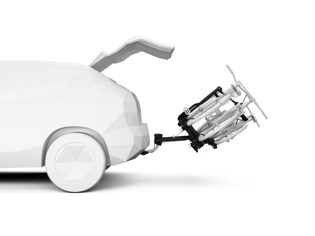 Nosič sa dá sklápať aj s bicyklami. Je výborne vyvážený a pri sklopení zabezpečuje dostatočne široký prístup do kufra automobilu.