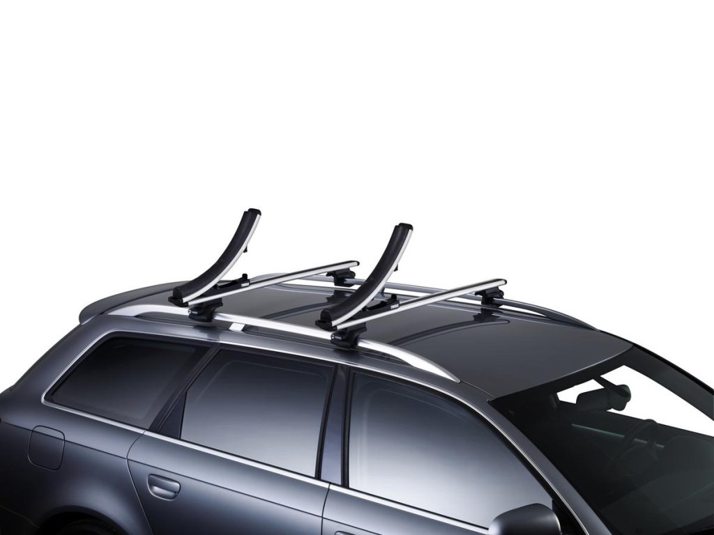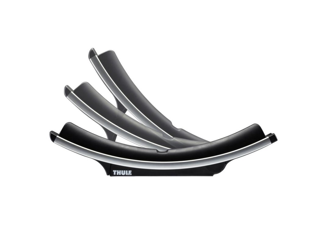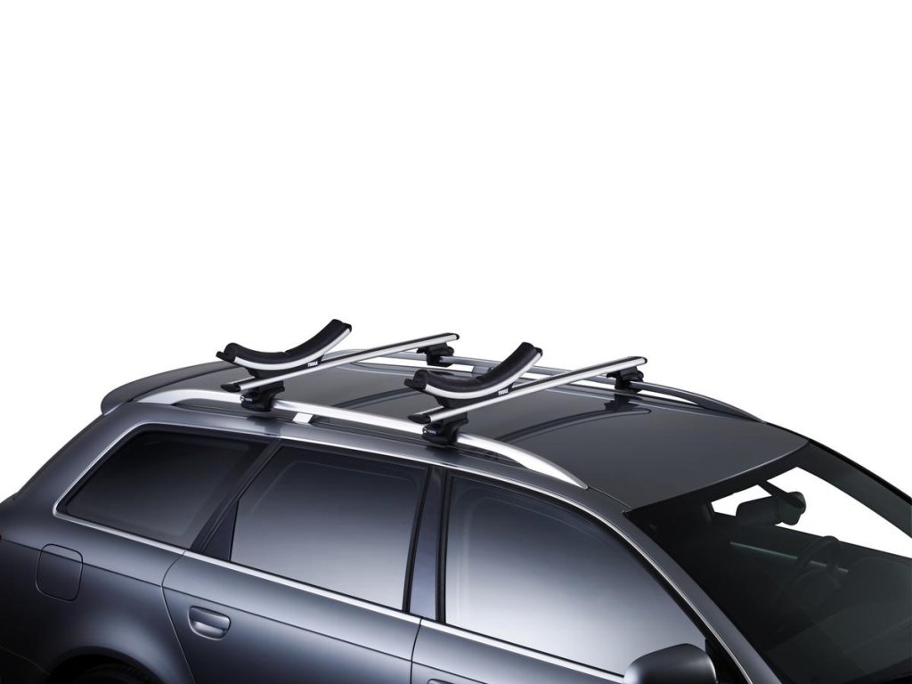 Nosič na prevoz jedného kajaku. Vďaka naklopeniu je nakladanie a vykladanie jednoduchšie. Pogumované časti nosiča chránia trup kajaku pred poškodením. Montáž do T-drážky.