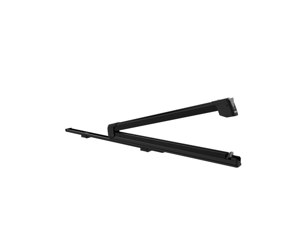 Upevnenie nosiča je priamo do T-drážky strešných nosičov pomocou integrovanej súčiastky ktorá je súčasťou balenia (pre upevnenie na hranaté tyče je nutné dokúpiť adaptér Thule 8897).