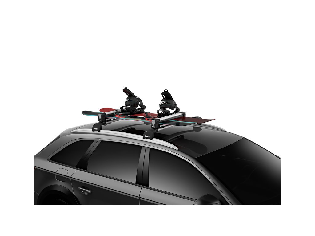 Thule Snowpack 7324 je strešný nosič s ktorým prepravíte 4 páry lyží, alebo 2 snowboardy. Šírka prepravnej plochy je 50 cm, čo postačuje aj na prepravu 4 párov carvingových lyží.
