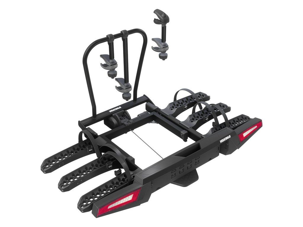 Unikátny nosič bicyklov na ťažné zariadenie, ktorý sklopíte do kompaktných rozmerov. Cyklonosič Yakima FoldClick 3 prepraví tri bicykle. Novší model je vylepšený o LED svetelnú rampu a konštrukcia je čierna.